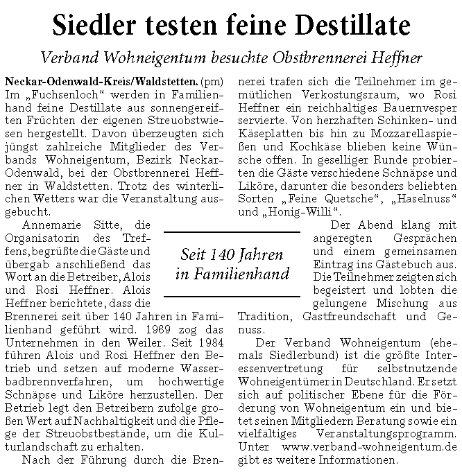 Die Besuchergruppen sind ganz unterschiedlich - neulich waren der "Verband Wohneigentum" bei der Obstbrennerei Heffner und total